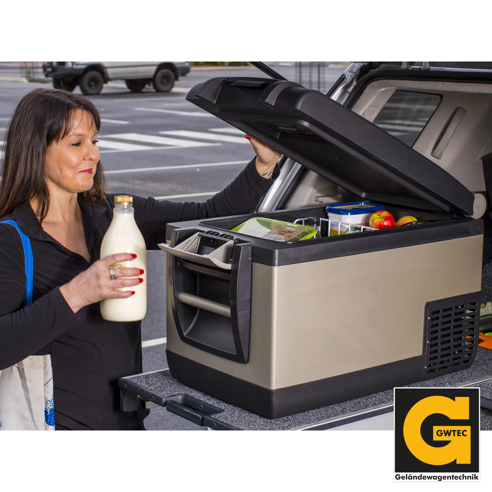 Der bewährte Danfoss-Kompressor kühlt zuverlässig im Temperaturbereich von +10°C bis -18°C – bis zu 50°C unter Umgebungstemperatur. Die Steuerung erfolgt über wasserfeste Bedientasten mit Digitalanzeige. Dank integriertem Kühlkabinett bleibt die Isolierung optimal geschützt. LED-Innenbeleuchtung, herausnehmbarer Korb mit Trenngitter und Abflussstopfen sorgen für Komfort im Alltag.