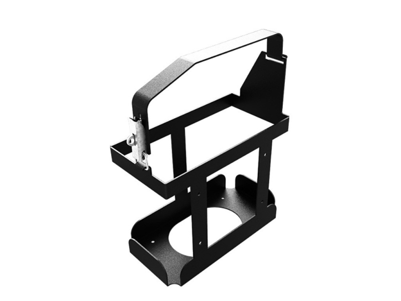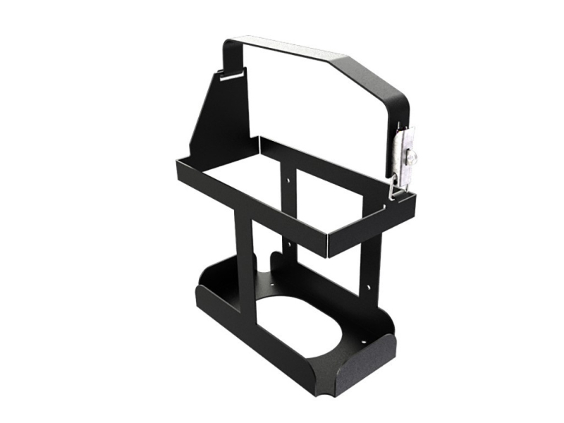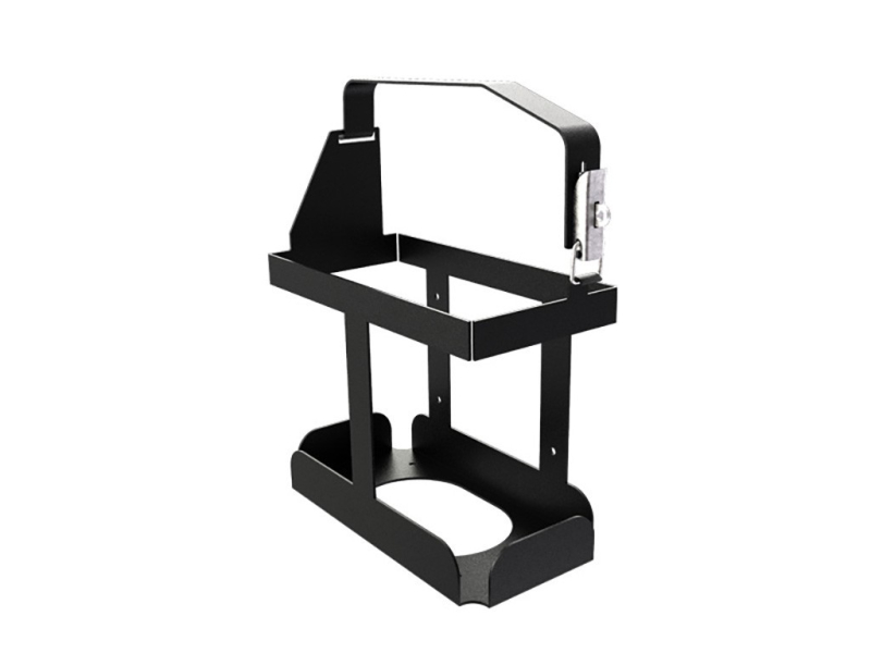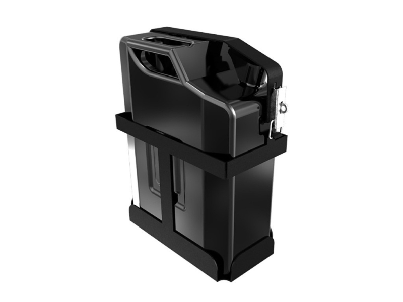 Diese aufrechte Reservekanister-Halterung bietet eine platzsparende und sichere Transportlösung für dringend notwendigen Kraftstoff.