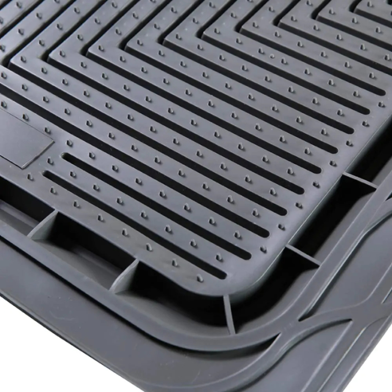 Die Bushranger Mud Tamer Fußmatten sind mit tiefen Rändern entworfen, um alle Verunreinigungen, die in das Fahrzeug gebracht werden, von Sand, Schmutz, Schlamm, Schnee, sogar Wasser kann innerhalb der Matte aufgefangen werden. Sie bestehen aus einer soliden Gummikonstruktion, die formstabil und leicht zu reinigen ist. Ein hoher umlaufender Steg hält Schmutz von Ihrem Innenraummaterial fern. Die Unterseite der Matte ist mit Noppen versehen, die ein Verrutschen der Matte verhindern. Großzügig in der Größe, können sie auch für eine hervorragende individuelle Passform für Ihr Fahrzeug Fußraum getrimmt werden.