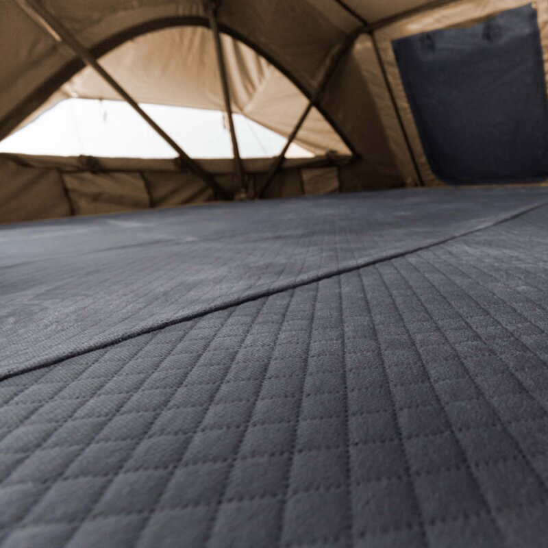 Zu drei Seiten findest du Fenster, die du öffnen und verschließen kannst, wie du es gerade brauchst. Zudem sind alle Öffnungen mit flexiblen Moskitonetzen versehen. Ein besonderes Highlight ist das große Skyline-Fenster im Dach, durch welches du nachts vielleicht die eine oder andere Sternschnuppe erhaschen kannst. Sehr komfortabel und um umständliches Handtieren mit Taschenlampen, etc. zu vermeiden ist die LED Innenbeleuchtung, die du einfach über einen USB-Anschluss an einer Powerbank zum Leuchten bringst. Wenn du dich in die Waagrechte begibst, wirst du feststellen, dass dir die High Density Viskoschaumstoff Matratze optimalen Liegekomfort bietet und du mindestens genauso gut schlafen wirst wie in deinem Bett zu Hause.