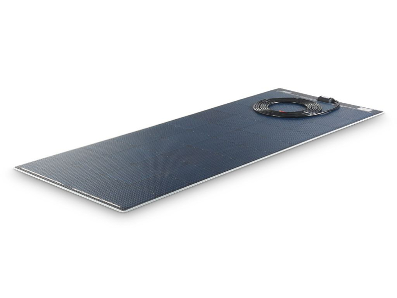 This FLAT LIGHT complete system works with an ultra-flat, ultra-light 150-watt solar module. This makes them ideal for use on panel vans or high roofs, where the installation height must be as low as possible. The solar module is glued directly to the vehicle roof. High-performance solar cells guarantee solid solar performance even in hot holiday regions.