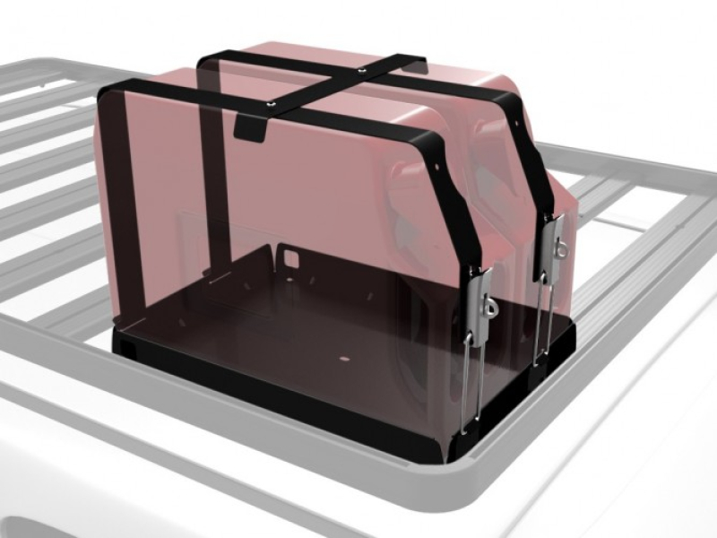Die Doppel Reservekanister-Halterung von Front Runner bietet eine intelligente und klapperfreie Lösung, um zwei 20 L Reservekanister von Front Runner oder alle anderen gängigen Reservekanister auch durch schwierigstes Gelände zu transportieren.
