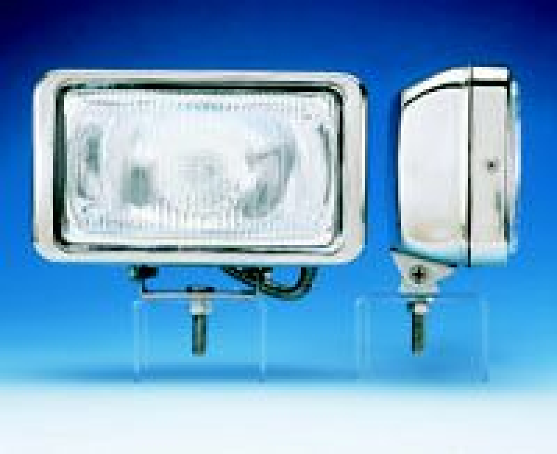 Großer Rechteckscheinwerfer mit rostfreiem chromglanz-poliertem Edelstahlgehäuse ( W.ST 1.4301). Die hohe Lichtleistung aus dem Aluminiumreflektor unterstreicht die Qualität des Scheinwerfers. Mit EG-Straßenzulassung für H3 12/24 Volt.