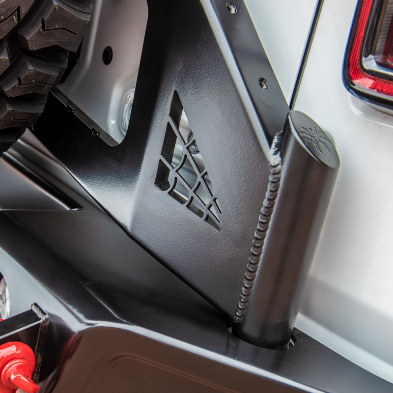 Der Ersatzradhalter kann mit der Crawler, Bruiser und der original Stoßstange kombiniert werden.