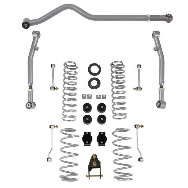 Die perfekt abgestimmten Federn mit den unteren vorderen Längslenker zur Korrektur des Nachlauf, bieten höchstes Fahrvergnügen, egal ob on- oder off road. Die Achsanschläge und Stabistangen vorne wie hinten runden dieses Kit perfekt ab.