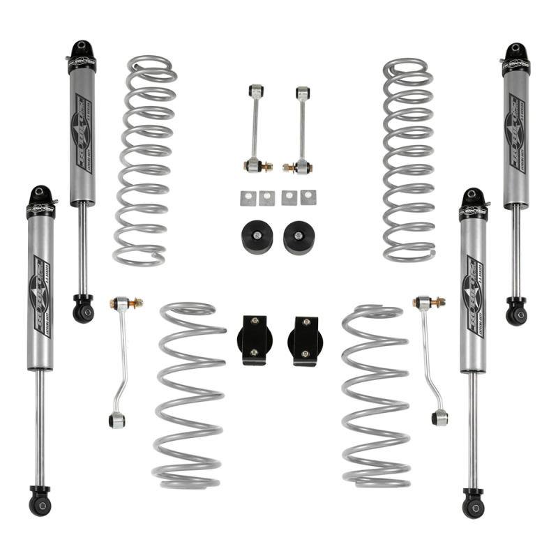Die perfekt abgestimmten Federn mit den fahrzeugspezifischen 2.5" Monotube Stoßdämpfern bieten höchstes Fahrvergnügen, egal ob on- oder off road. Die Achsanschläge und Stabistangen vorne wie hinten runden dieses Kit perfekt ab.