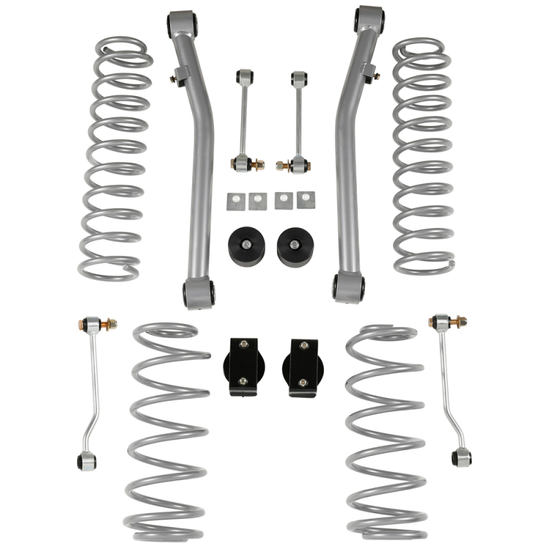 Die perfekt abgestimmten Federn mit den unteren vorderen Längslenker zur Korrektur des Nachlauf, bieten höchstes Fahrvergnügen, egal ob on- oder off road. Die Achsanschläge und Stabistangen vorne wie hinten runden dieses Kit perfekt ab.