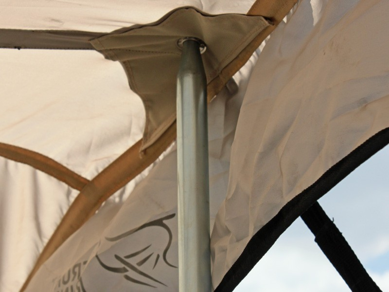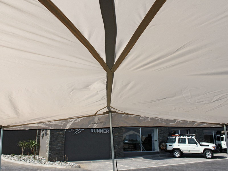 - Wenn am Fahrzeug befestigt, benötigt die Front Runner Modul-Markise nur 5 Aluminiumstangen als Pfeiler.