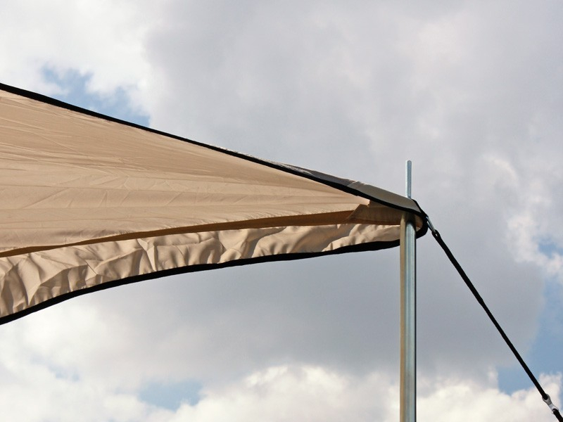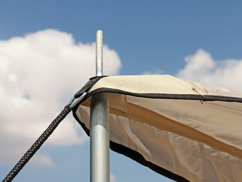 - Die Aluminiumstangen werden in Metallösen in der Markise befestigt- für einen schnellen und einfachen Aufbau.