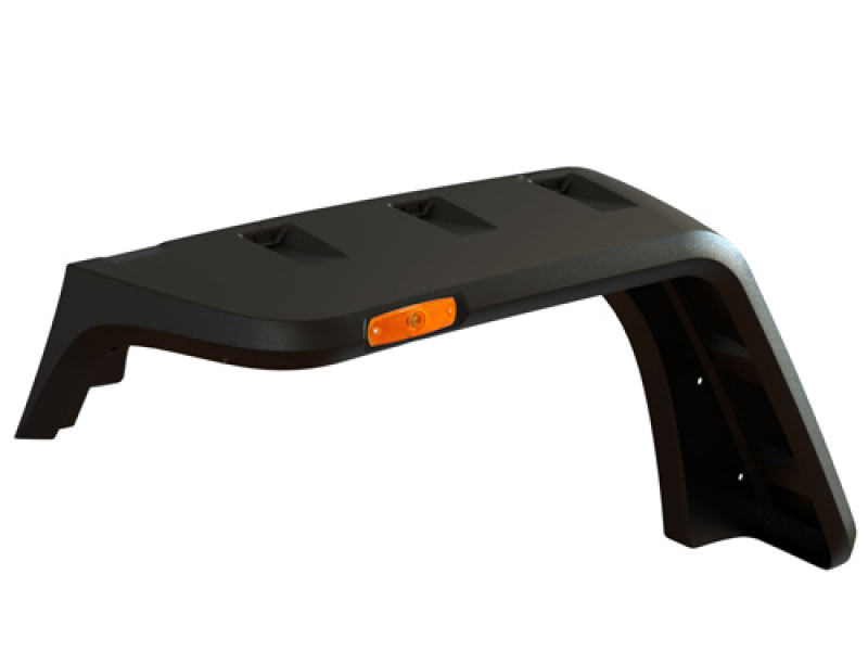 Fully molded design covers exposed wheel well sheet metal and works with factory inner splash guard to protect engine