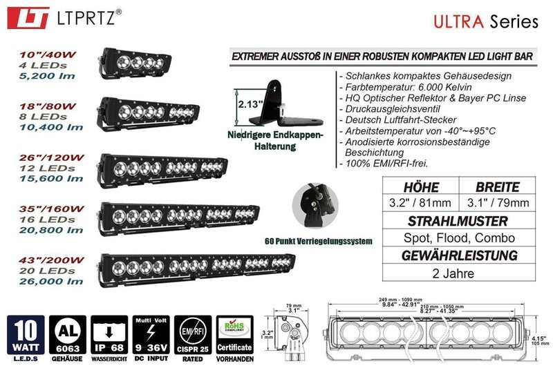 Der Hauptunterschied zwischen der 10W ULTRA-Serie und anderen LIGHTPARTZ Lichtleisten ist die