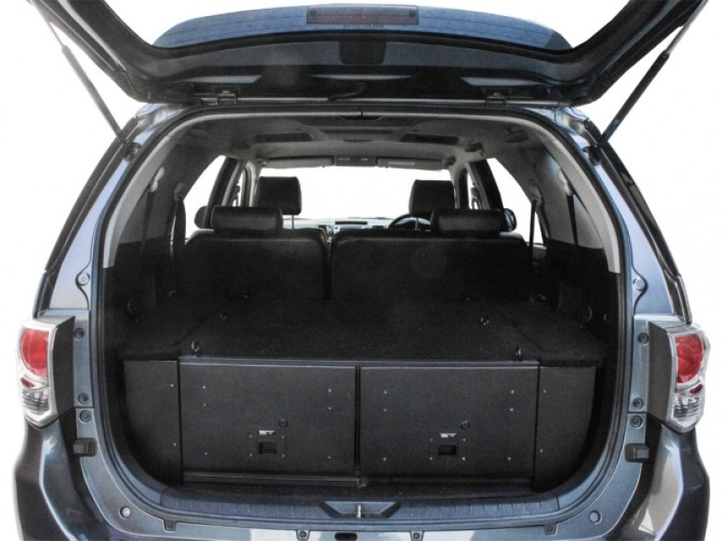Das Verstauen Ihres Gepäcks und Ihrer Wertsachen wird zum Kinderspiel. Diese zwei verschließbaren Schubladen wurden speziell für den Toyota Fortuner entwickelt. Verstecken Sie den Inhalt vor neugierigen Blicken und schaffen Sie zugleich mehr und leichter zugänglichen Stauraum in Ihrem Fahrzeug.Dieses Schubladen Kit verfügt über zwei verschließbare Schubladen, zwei Schlüssel pro Schloss, drei Schienen, sechs Verzurrringe, ein Deck Set, ein Oberflächen Set, Halterungen, die nötige Installationshardware sowie eine detaillierte Montageanleitung.
